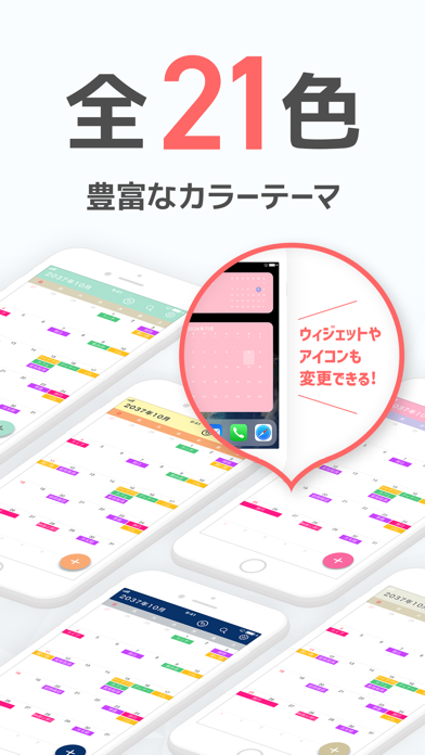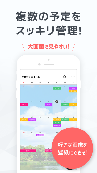 余計な機能が無くとてもシンプルなカレンダーアプリ。操作は類似アプリと変わらず、日付をタップして予定を入れるだけで誰でもすぐに使えます。予定ごとに最大35色まで色分けできるので、家族や学校、仕事などジャンルごとにわかりやすく整理可能です。
