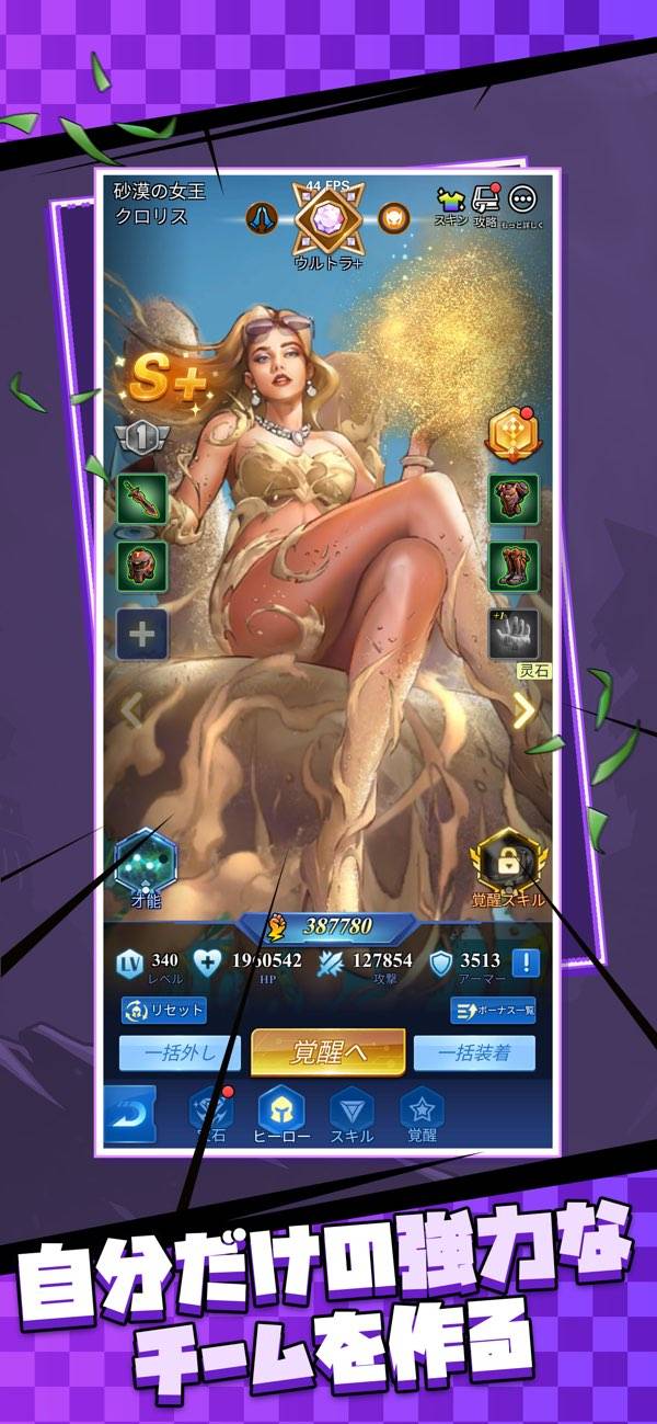 ヒーローは装備セットで戦闘力が上昇、レベルアップでスキルを覚えます。レベルアップに必要な素材はカードバトルに勝つと獲得可能。パズルのクリア報酬などでもらえるダイヤを使えば新しいヒーローの獲得もできますよ。