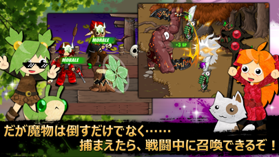 ネタ要素満載のカジュアルなターン制RPGです。ランダムエンカウントがないため、必要最低限のバトルで物語を進められます。状態異常や属性の相性があるので、それらを生かした戦略的なプレイも可能。運が良ければ魔物を捕まえて使役できます。