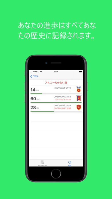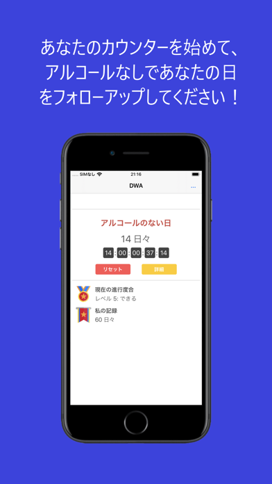 - 統計機能により禁酒の期間を振り返り、モチベーションを維持できる