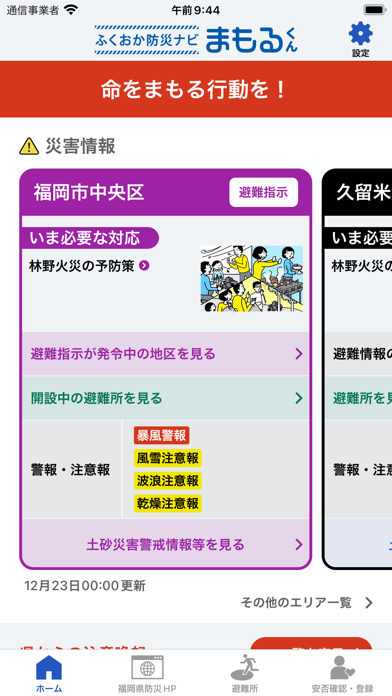 - 防災情報や避難所情報などを簡単に確認できる、福岡県公式の防災アプリ