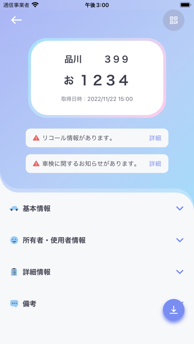 車のナンバーや所有者の住所など、基本的な情報をスマホから管理できます。従来は電話や郵便物にてお知らせがあった、車検の案内やリコールのお知らせも、アプリからすぐに受け取れるのがメリット。