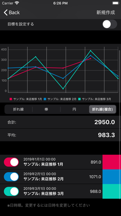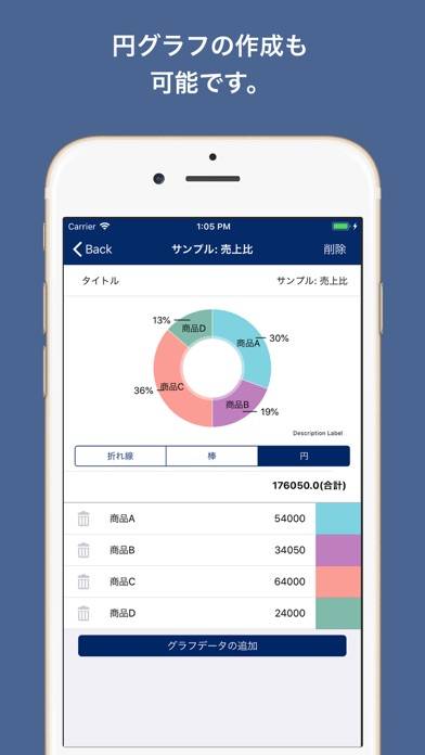 - 推移や割合といったデータを、シンプルな操作でグラフ化できるアプリ