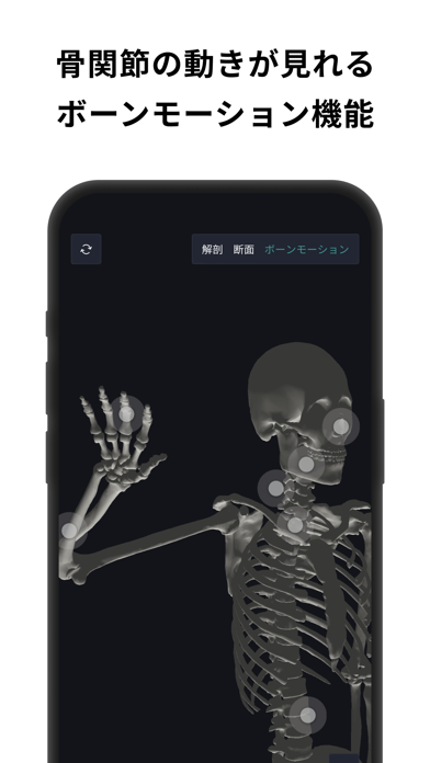 部位を選んで拡大できたり、断面図に切り替えられたりと、自由度が高いうえに詳しく見られるのがいいですね。部位ごとの解説もわかりやすい。個人的には骨の動き方を見ることができる機能が気に入っていて、なんとなく見ているだけでも体の仕組みを学べて楽しいです。