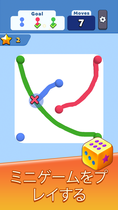 線が交わらないように同じ色のボールを繋げる、ボールをなぞって消すなどのゲームを収録。制限時間がないため、じっくり考えて遊べるのが嬉しいポイントです。しかしミニゲームが終わるたび広告が流れるのが、若干気になるところ。