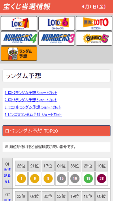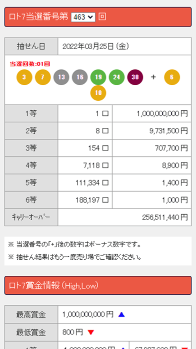 「LOTO6」などの宝くじ当選番号を一覧で確認できるアプリ