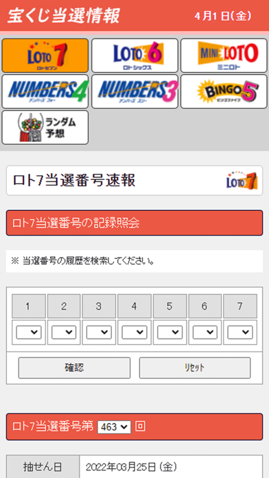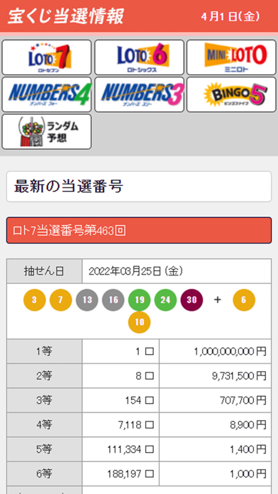 「LOTO6」などの宝くじ当選番号を一覧で確認できるアプリ