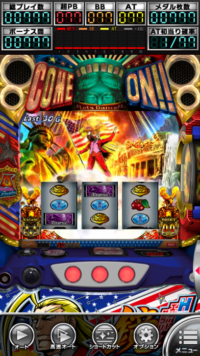 本アプリには、オートプレイやウェイトカット機能が標準搭載されています。また遊技データも簡単に確認可能。そのため実践データの収集にピッタリです。買い切りの課金パックを購入すれば、高速オートやボーナス当選なども自由にできるようになりますよ。
