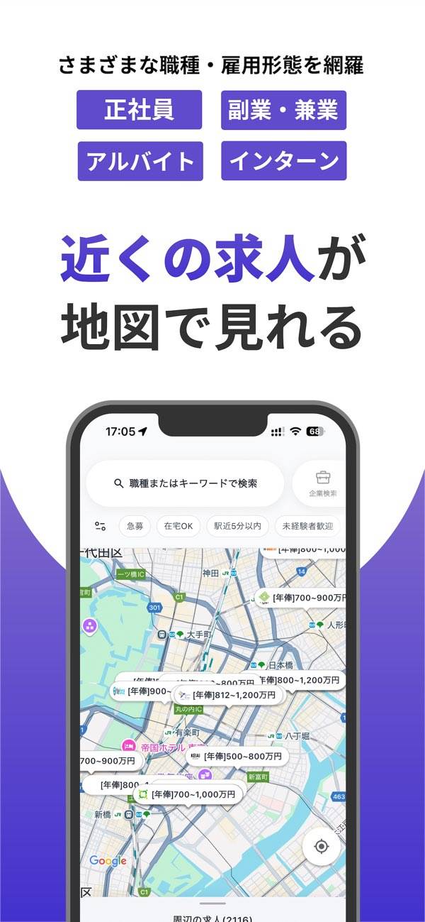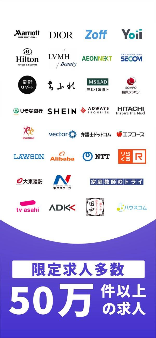 履歴書を作成するだけで、AIがおすすめ企業の採用担当者と繋げてくれます。会話の相手がわかった上で「Hello」と挨拶から応募できるため、気軽かつ安心して求職可能。また本アプリは履歴書をいくつも作成でき、希望する職種が複数ある場合でもAIが的確におすすめ企業を紹介してくれます。