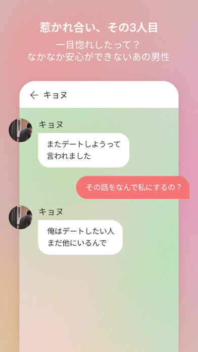 恋愛リアリティショーが好きな人にピッタリのゲームです。チャットのメッセージを選択しながら、物語が進行していきます。物語もチャット画面もかなりリアルなので、自分が実際に恋愛リアリティショーに参加している気分になれます。新しいエピソードも追加されていくようなので、とても楽しみです!
