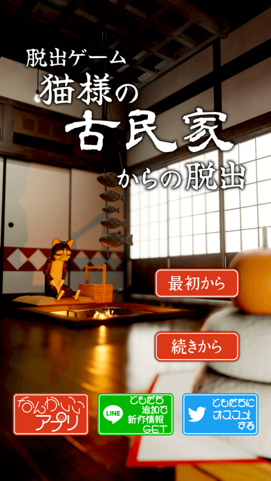 「人の言葉を話す猫が古民家でかくれんぼしている」不思議な世界が舞台。趣のある古民家を捜索して手がかりを見つけましょう。暗号を解読できると新たな部屋を開放できます。難易度は初級から中級となっており、ヒントも充実しています。