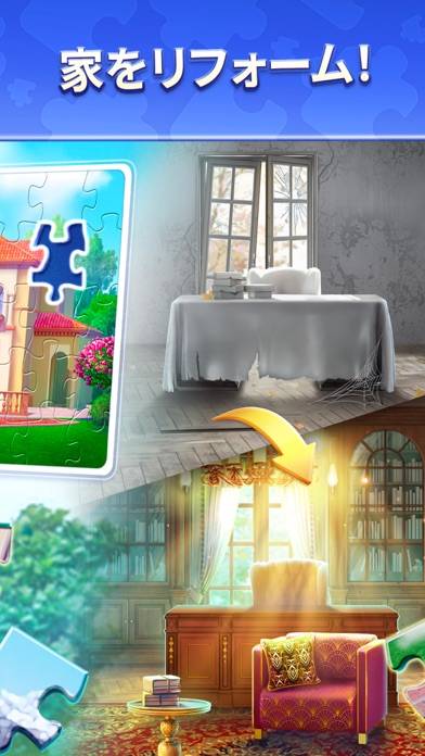 ジグソーパズルで遊びながら、お家のリフォームまで楽しめるパズルアプリ。各ステージごとにストーリーが用意されており、登場人物たちの行く末にも注目です。ジグソーパズルがあまり得意ではない人は、ヒントアイテムを使った楽しみ方もあります。