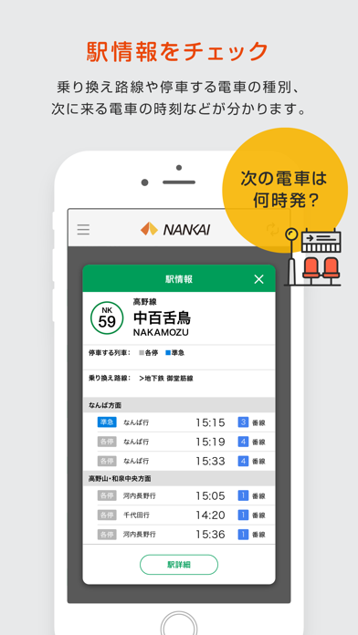 - 南海線のダイヤや遅延情報が見られる。通勤通学の手助けに