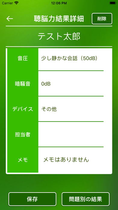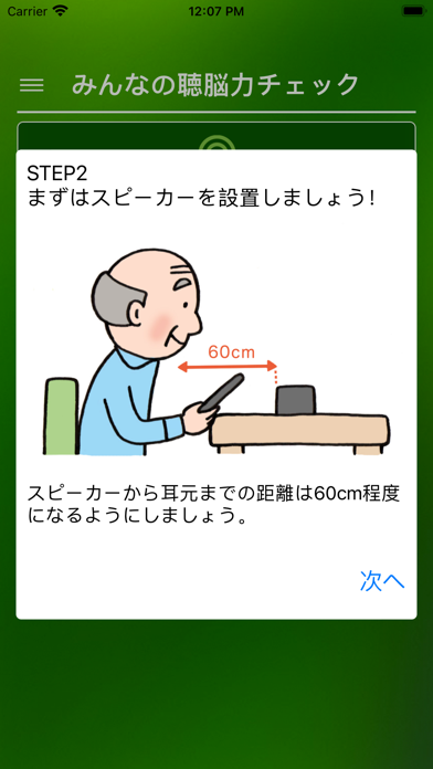 - 20問の聞き取りテストを受けて、簡易的に聴力検査可能