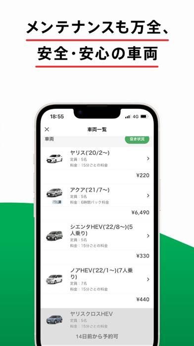 トヨタのカーシェアリングサービスの利用に必要なアプリ。車の予約から利用までをスマホひとつで可能にします。自由度の高いレンタルシステムが特徴。24時間いつでもレンタカーの利用ができ、急な予約変更や取消も無料で可能です。