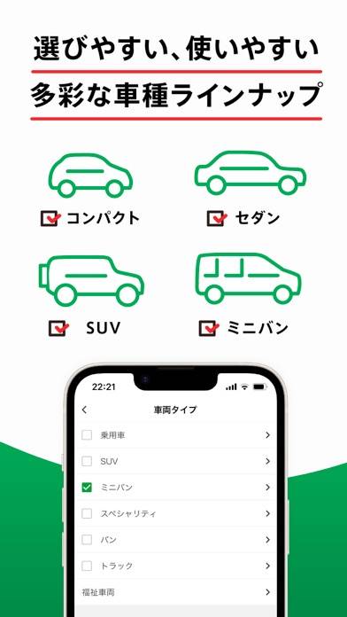 - 出発から返却までスマホで完結! 店頭受付や鍵の受け渡しも不要