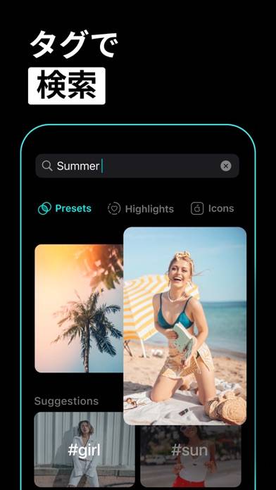 タグ検索機能が搭載されているので、お目当てのフィルターを探しやすいのがポイント。「人物」や「風景」はもちろん、「ビーチ」や「犬」などさまざまなワードに対応しています。