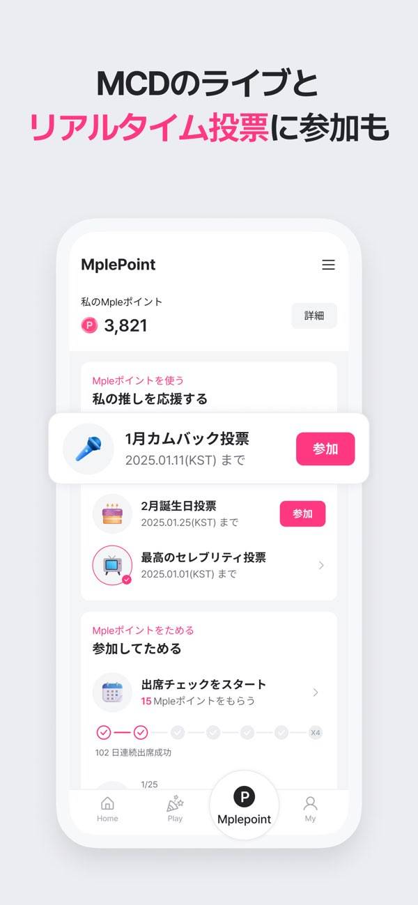- 推しを応援できる投票プログラムを開催。アプリ経由で参加できる