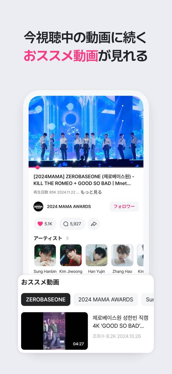 - K-POPアーティストのライブ配信や、出演番組をまとめて視聴