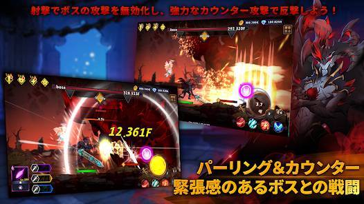 放置ゲームながらもかなり本格的なアクションバトルが楽しめます。オフラインの間でも、育成素材集めやステージ進行を自動で実行。ステージの最後までたどりつくと、アクションバトル要素のあるボス戦に挑戦できます。
