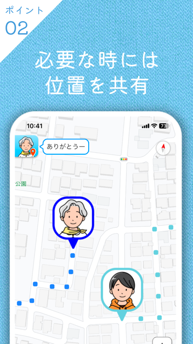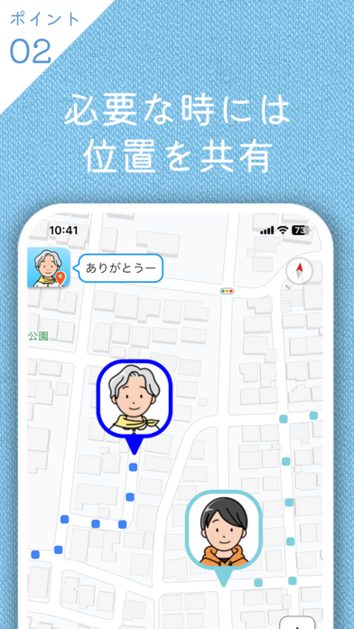 ワンタップでメッセージを送りあえ、いざというときには緊急連絡先から通報が可能。毎日のささやかなコミュニケーションに、活用してみませんか。