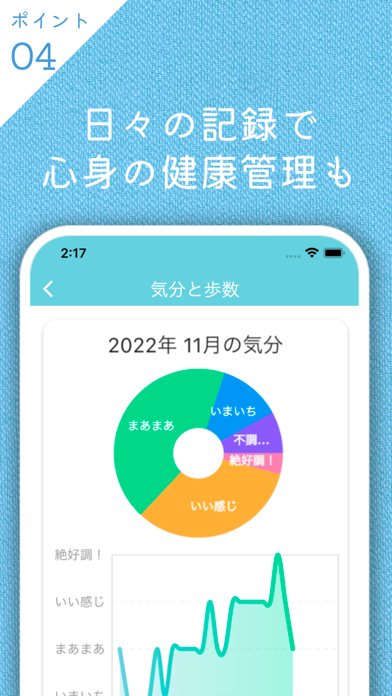 - 完全無料で利用可能。気分と歩数を共有してお互いの様子がわかる