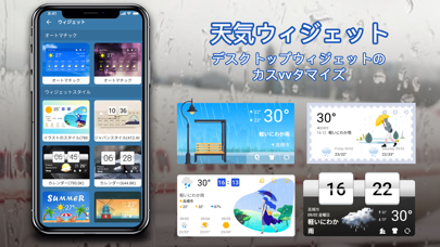 22種類の中から好きなウィジェットを選べます。時間と今の天気が表示されるシンプルなものから、1週間の天気がわかる大きなものまで多様。デザインにも凝っていて、ほかのお天気アプリにはなかなかないスタイリッシュなデザインも豊富です。