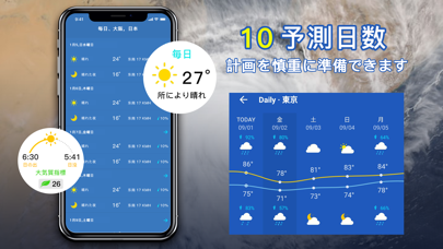 - 毎日の詳細な気象情報に加え、7日間の天気・気温情報もチェック可能