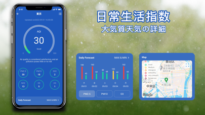 場所を選ぶと、その瞬間の天候や今後7日間の予報をチェック可能。雨雲の接近もレーダーで確認できます。大気質や気圧もわかるため、体調の変化に備えられます。イラストやグラフが多いので、直観的に天気をとらえられるでしょう。