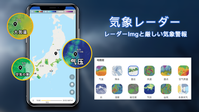 気温や天候など毎日の天気をリアルタイムで緻密に追うアプリ。複数の場所の気象情報を追跡できるので、旅行や出張が多い方には必携の機能です。気象レーダーや衛星画像といった視覚的情報も豊富で、天気の変化を直感的に捉えられます。