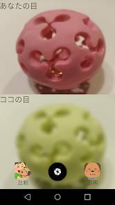 比較機能を使うと、上に人の目、下に犬の目と1画面で表示してくれます。自分の目を動かして、違いを確認せずに済むので便利です。比較機能を使わない場合、画面には犬の視覚だけが映し出されます。