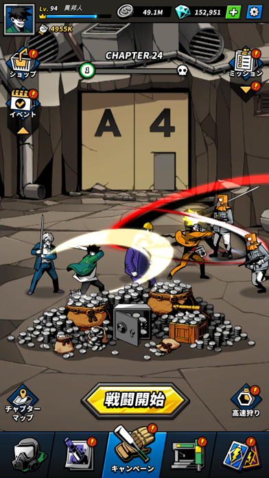 放置ゲームとしては珍しく本作にはストーリーがあります。放射線だらけの地表の避難先である地下都市から、収容人数制限のため追い返された主人公たち。その怒りによって、地表は犯罪だらけの無法地帯に。懸賞金目当てに主人公は犯罪者を倒していきます。
