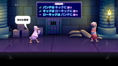 画面をタップして敵を攻撃していきましょう。画面右上のライフがなくなるとゲームオーバー。本アプリはパンチはキックに勝つ、キックはローキックに勝つというように三すくみの法則があります。そのため反射神経もクリアのカギに。