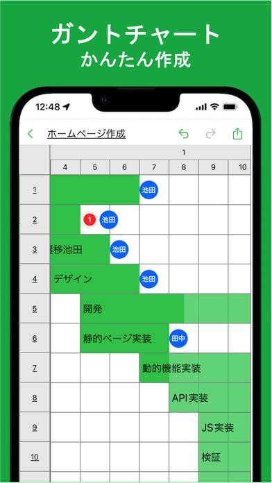 見やすくプロジェクトを管理するガントチャート作成アプリです。タスクの進捗率や優先度、スケジュールなどを視覚的にわかりやすい管理ができます。タスク項目の作成がシンプルで、必要項目を入力するとガントチャートに表示。またExcelやテキストファイルでの共有もできるため、パソコンでも管理可能です。