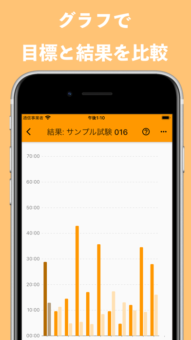 各問題における正答率や経過時間をチェックできます。グラフには、それぞれの問題を解くのにかかった時間を表示。目標時間と計測結果を比較して、時間がかかっている問題の対策が可能です。振り返りをもとに、問題ごとの目標時間を決めてみましょう。