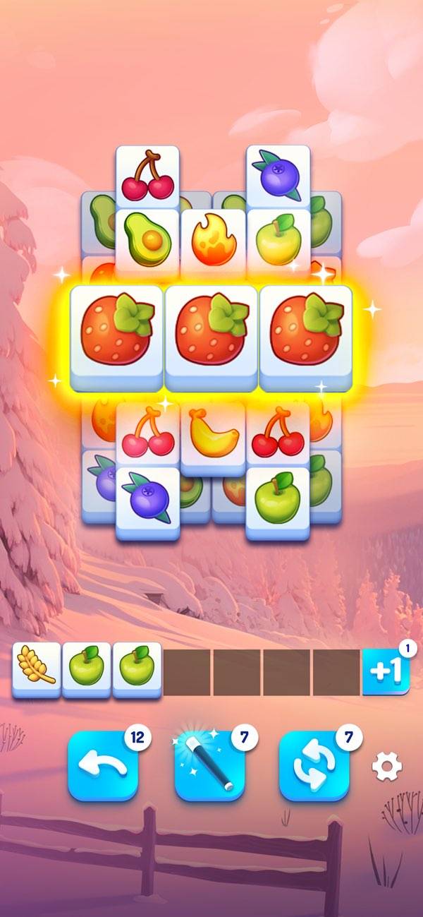 山積みになったピースを順に消していく、マッチパズルゲームです。麻雀牌を使った「上海」と似たルールになっており、山積みの中から同じ絵柄のピースを3つ集めていきます。