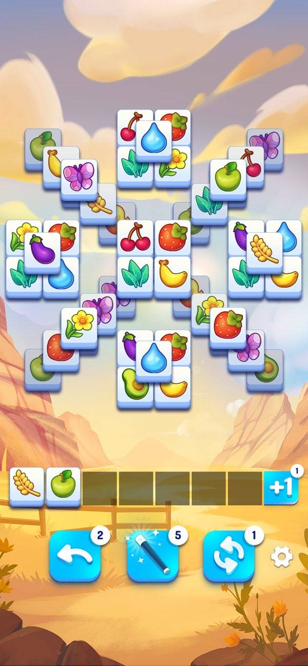 積まれたピースをタップして、絵柄を揃えていきます。山の下の方にあるピースは選べないので、上の方から消していきましょう。消す順番次第では絵柄が揃えられなくなるので、ちょっとした脳トレ気分でプレイできます。