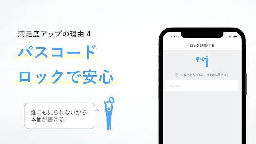 アプリにパスワードロックをかけられるのが特徴です。プライベートなことだから、家族や友人には見られたくないという人は設定をしておくのがおすすめ。アプリの「メニュー」から「画面ロック」を選択して、4桁の数字入力すると設定完了です。