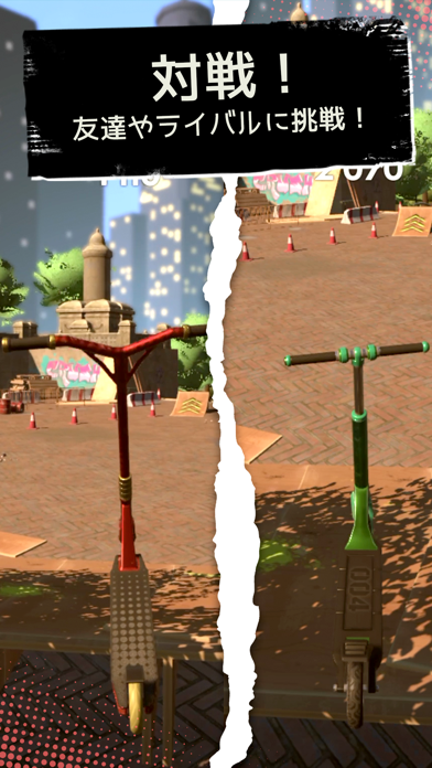 フリースタイルのキックスクーターでスコアを競うアクションゲーム。ジャンプ中に技(トリック)を決めてハイスコアを目指しましょう。2本の指でスクーターを回したり、着地をしたりするだけなので複雑な操作はありません。