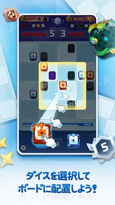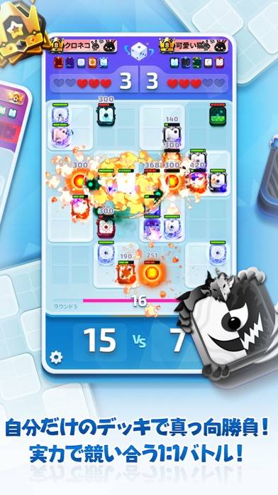 ダイスを設置&合体しながら戦闘を進めていく、PvPゲームです。デッキの中からランダムに出てくるダイスを選び、マスの上に設置。同じダイス同士を合体させると、攻撃力など性能がアップします。1回のバトルで5回ダイスを選べるので、戦略性のある戦いが楽しめます。