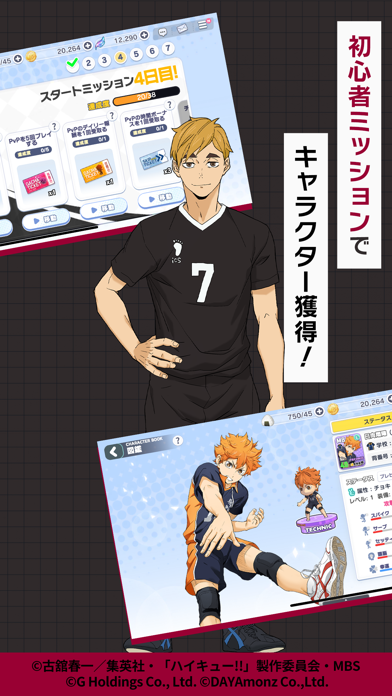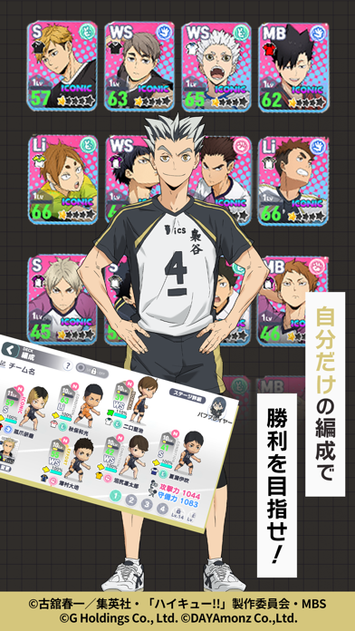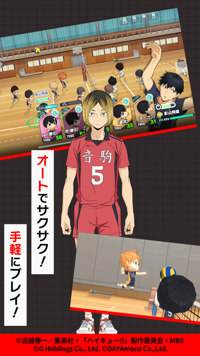 アニメ「ハイキュー!!」の物語を、フルボイスで追体験できるバレーボールゲームアプリ。お馴染みのキャラクター達が3Dのちびキャラで描かれ、白熱した試合を繰り広げていきます。