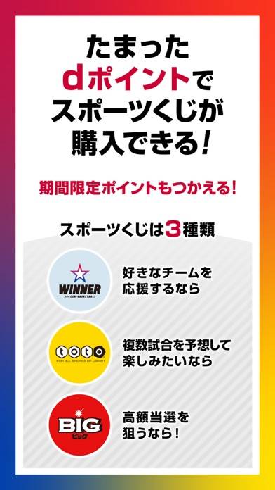 サッカーやバスケットボールの試合で勝敗を予想して、くじが購入できるアプリ。3種のくじがあり、1口200円から気軽に参加できます。勝敗予想はコンピューターに任せられるので、勝敗の基準がよくわからない人でも気軽に購入できるでしょう。