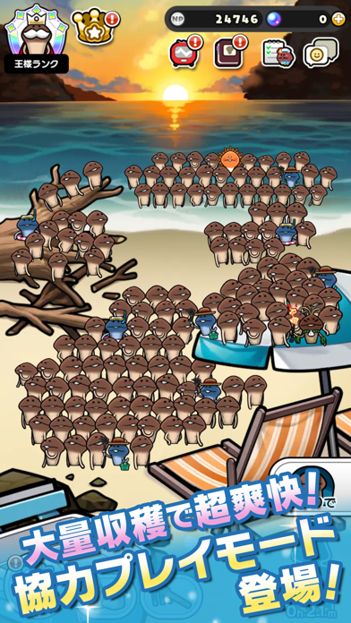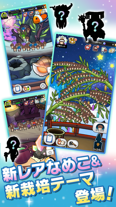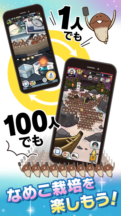 人気放置収穫ゲーム『なめこ栽培キット』が最大100人同時に楽しめます。一人でなめこを栽培して図鑑を埋める本来の遊び方はそのままに、協力イベント「みんなで栽培」が追加。協力プレイですが、みんなで収穫の喜びをシェアするゆるいもので気負わずに参加できます。イベントは定期的に入れ替わるので、終わりが来ません。