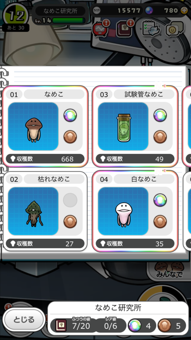 - 癒されるなめこたちを集めて図鑑埋め。従来の遊び方「ひとりで栽培」
