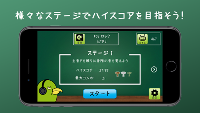 ランダムに主題される音を聞き分けて、正しい音を鳴らしましょう。1分間に正解できた数が多いと高スコアを獲得できます。また「問題を聞く」をタップすれば、何回でも聞き直せます。