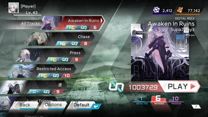 - 3次元空間に流れるノーツをタップ。難しい楽曲では指を交差する動きも
