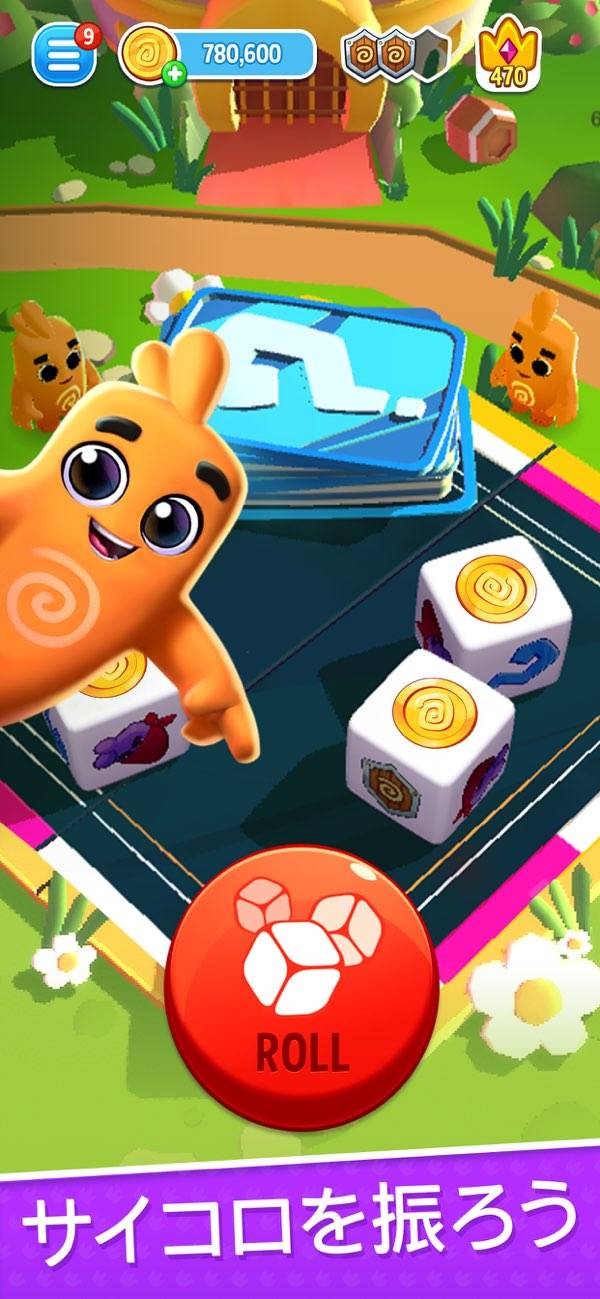 ゲームの目的は、サイコロを振って王国を発展させることです。タップ操作で3つのダイスがシャッフルされ、その出目によって手に入るコインの量が決まります。プレイヤースキルは必要ないので、手軽に王国建築を楽しめるでしょう。