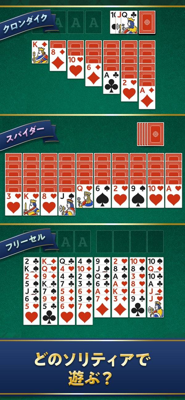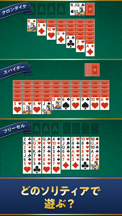 - 定番のクロンダイクやスパイダーがあり、難易度を選んで遊べる