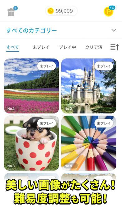 - パズルの操作は簡単でストレスフリー。完成図を見ながらパズルを作成