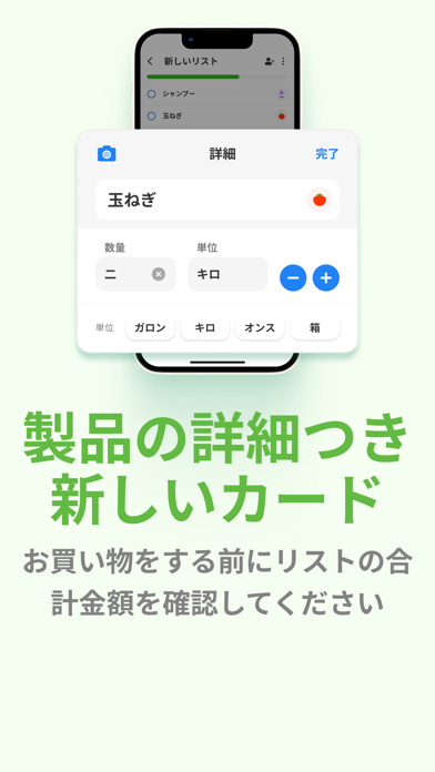- 買うものの管理に加え、料金の計算をまとめて行えるリストアプリ